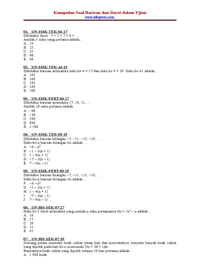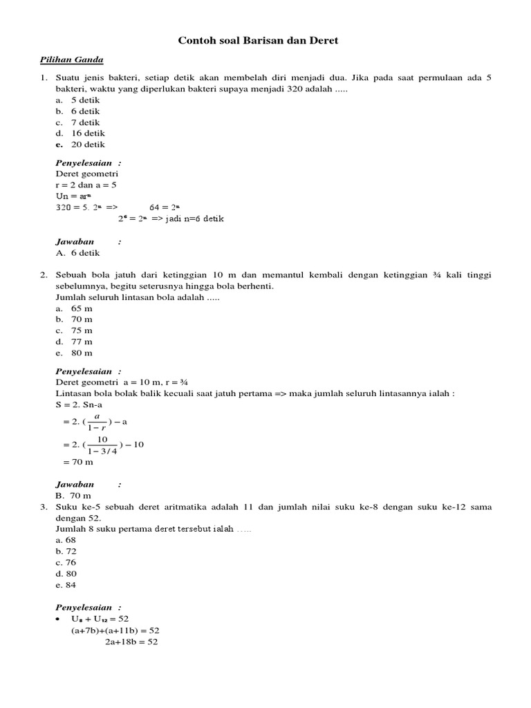 Contoh Soal Dan Jawaban Matematika Tentang Baris Dan Deret Guru …