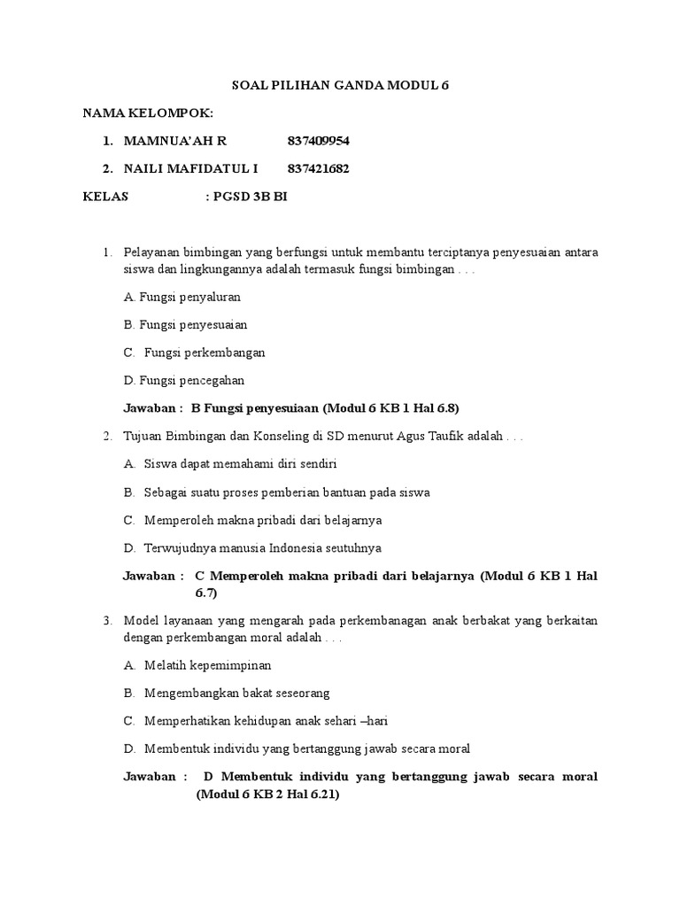 Soal Dan Jawaban Bimbingan Konseling - Bali Teacher