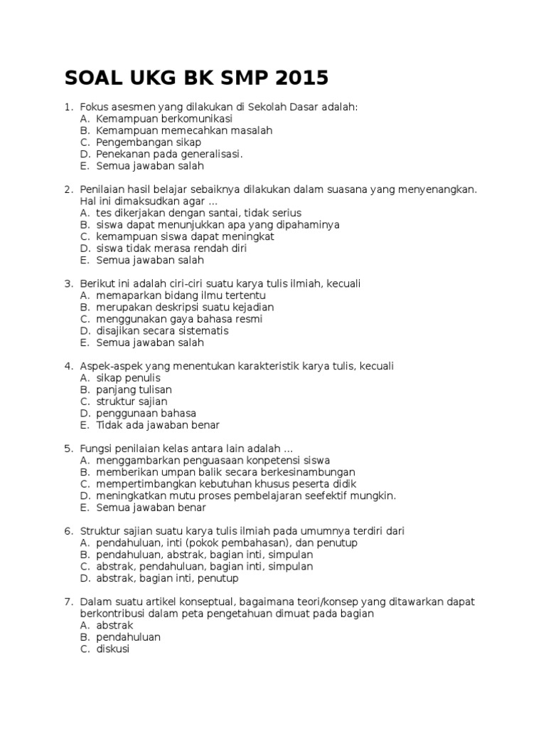 Soal Ukg Bimbingan Konseling Smp