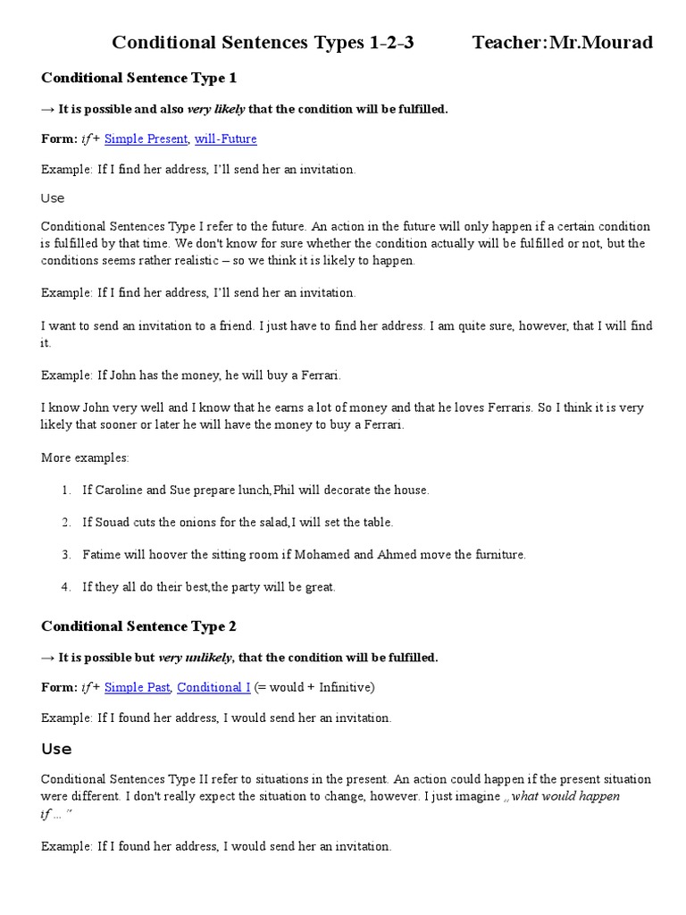 Conditional Sentence type 1 2 3