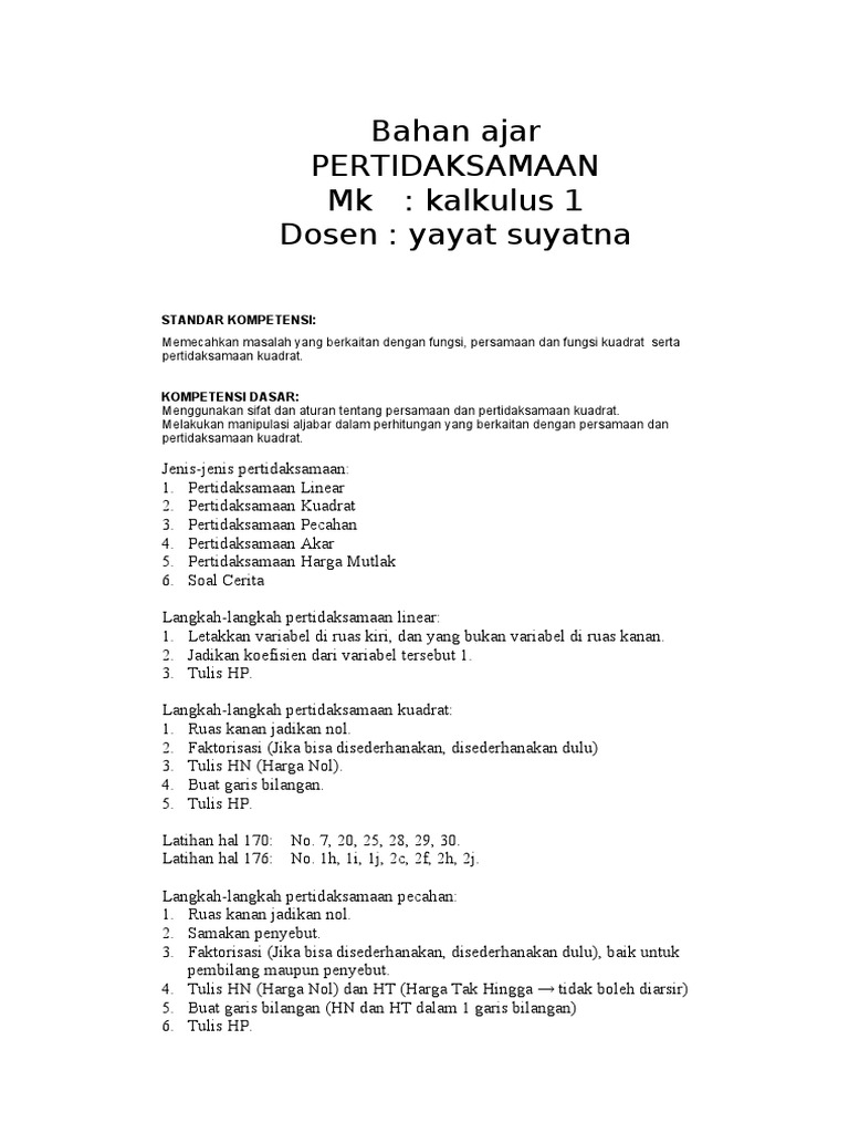 DOC) Kalkulus 1 : Turunan dan Penggunaan Turunan | Nurul Fatimah …