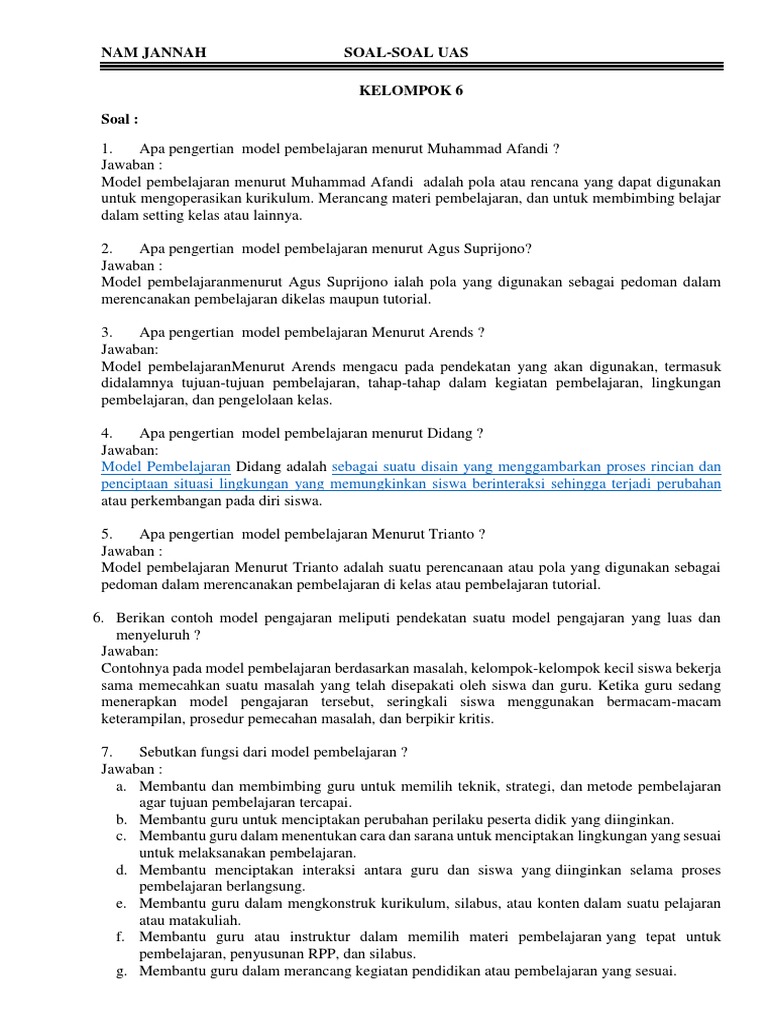 SOAL-SOAL Strategi Pembelajaran Matematika