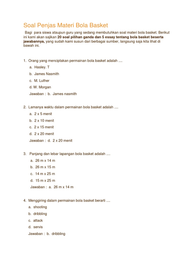 CONTOH SOAL DAN JAWABAN BOLA BASKET - maxsiders net