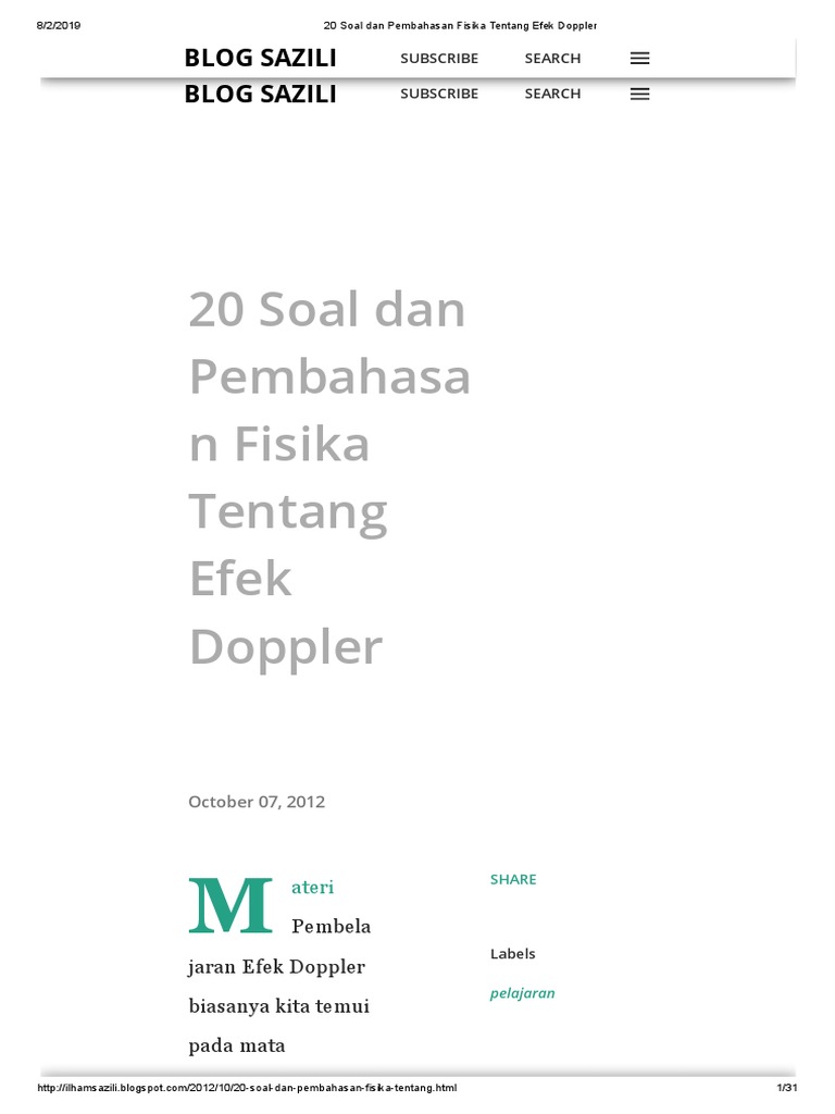 20 Soal Dan Pembahasan Fisika Tentang Efek Doppler - Blog Sazili