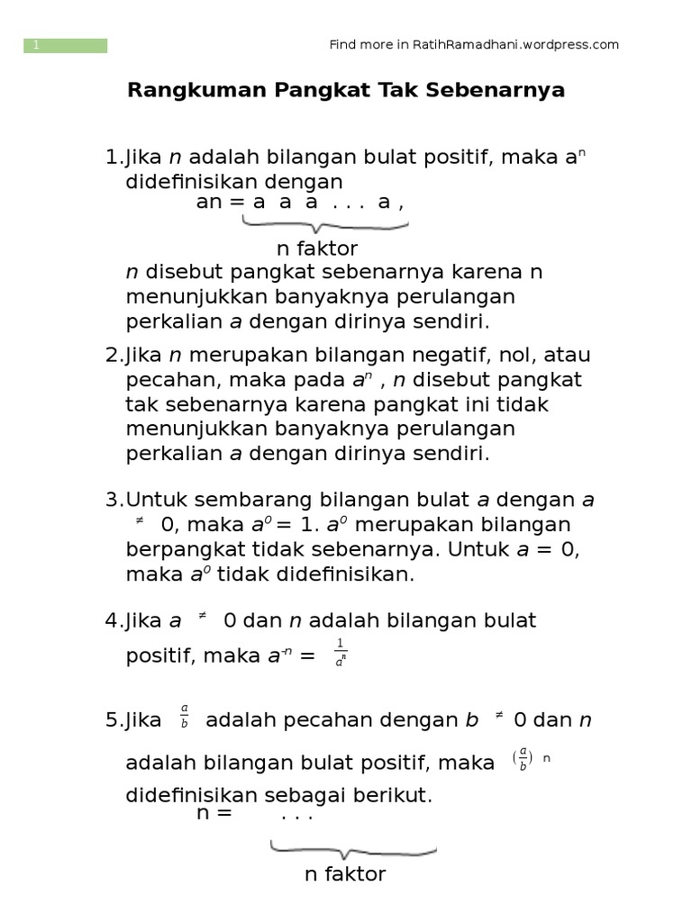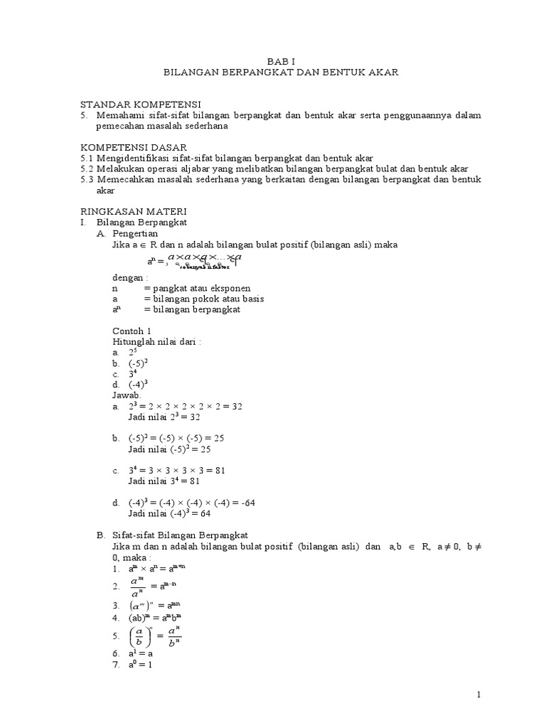 Rangkuman dan Soal Bilangan Berpangkat dan Bentuk Akar, Materi …