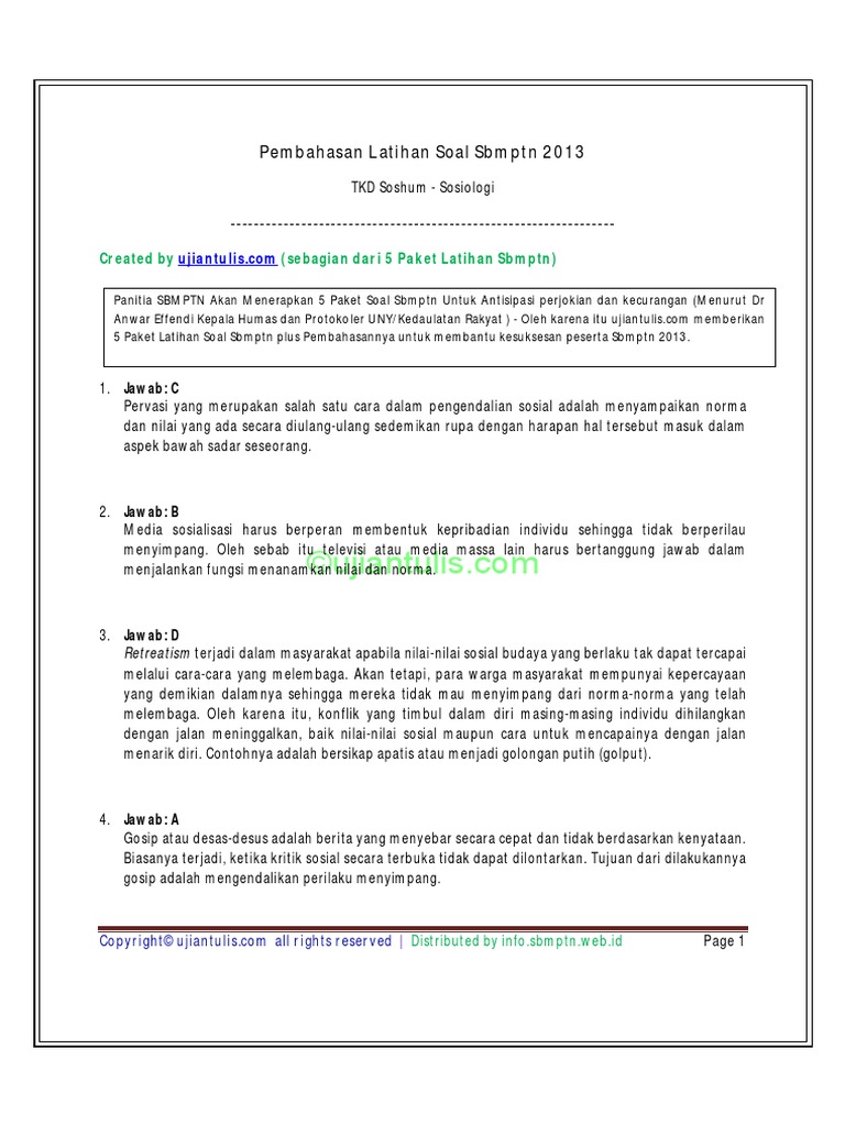 DOWNLOAD SOAL SOSHUM SBMPTN 2013 KODE 242 & JAWABAN | SOAL UTBK SBMPTN 2021 DAN PEMBAHASAN [PDF]