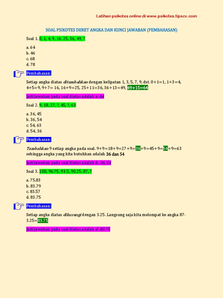 Contoh Soal Psikotes Deret Angka Dan Pembahasannya | Kumpulan …