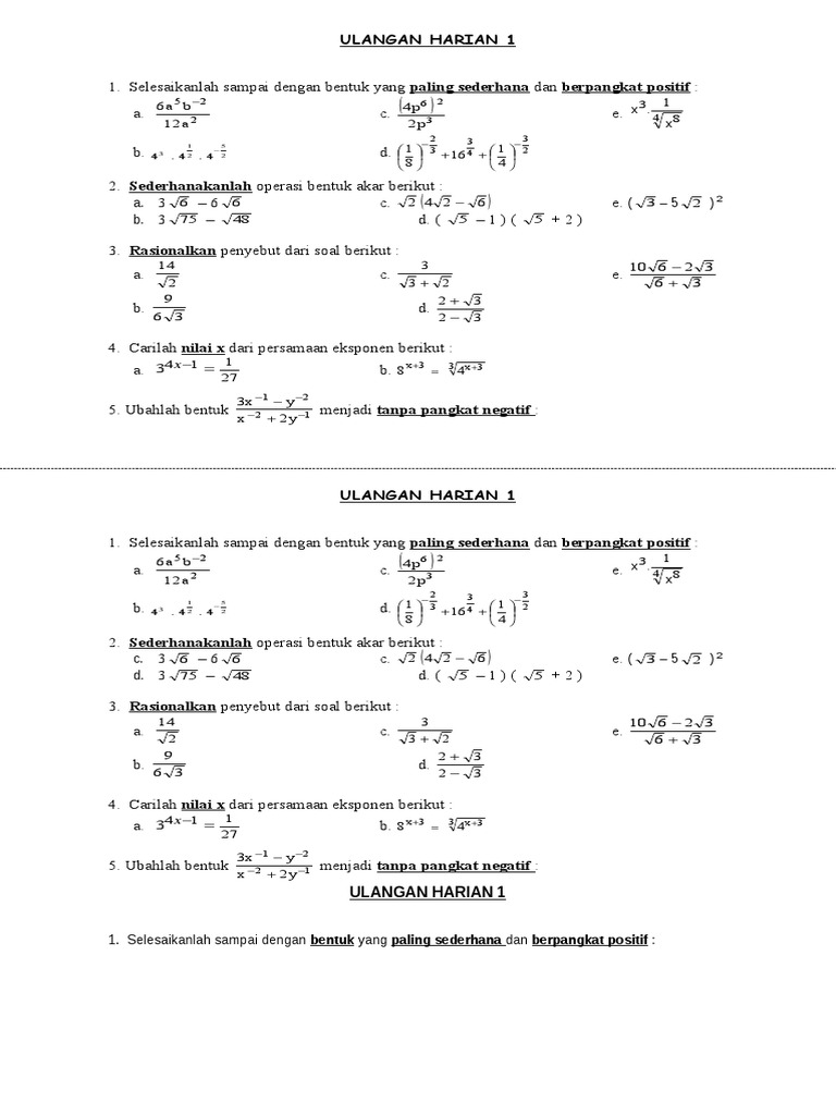 Soal Eksponen Dan Bentuk Akar