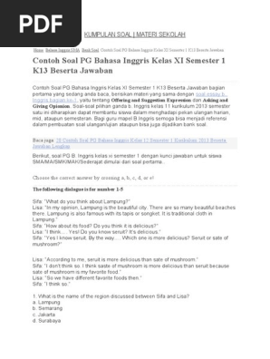 Contoh Soal PG Bahasa Inggris Kelas XI Semester 1 K13 Beserta …