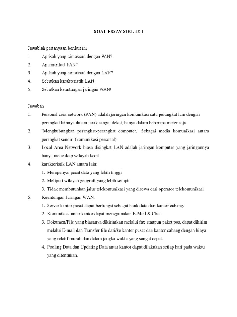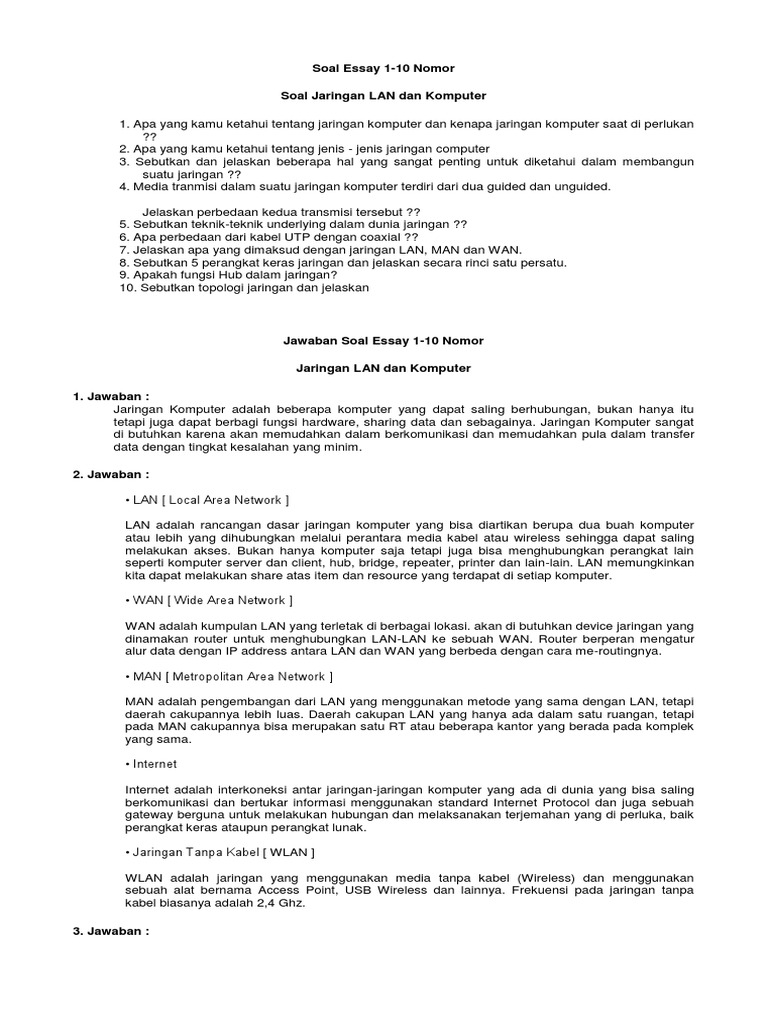 Soal Essay Jaringan Lan Dan Jawabannya – Gambaran