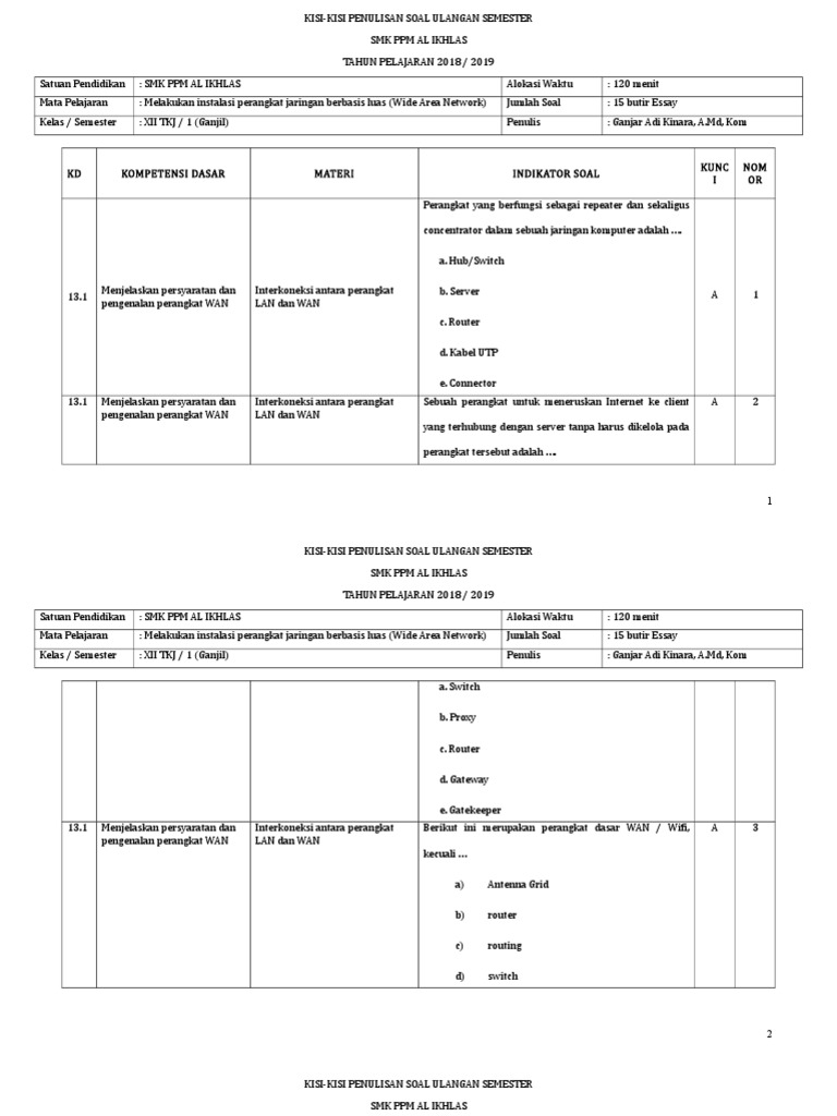 12 TKJ Installasi WAN Kisi-kisi Ganjil