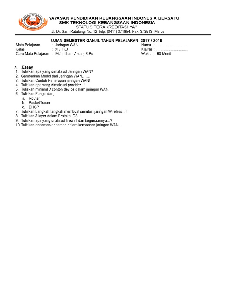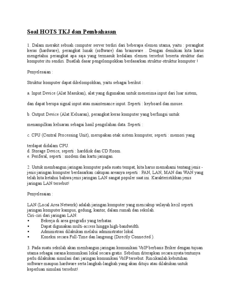 Soal Essay Tkj Dan Jawabannya – Gambaran