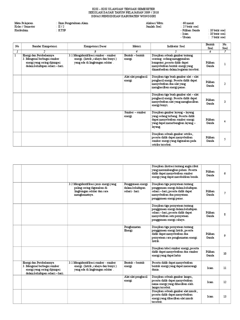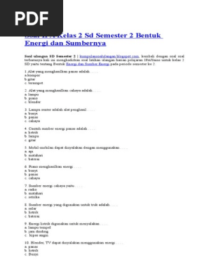 Soal IPA Kelas 2 Sd Semester 2 Bentuk Energi Dan Sumbernya - [DOC Document]