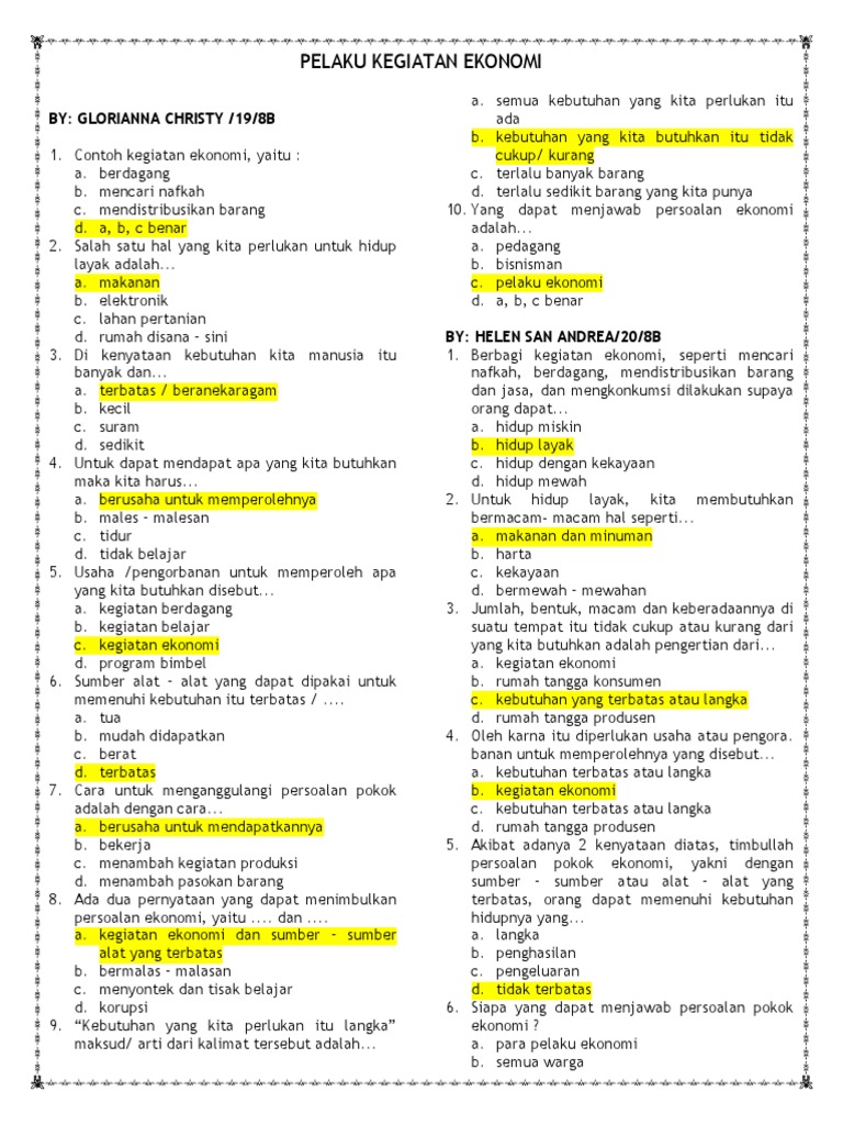 SOAL LATIHAN IPS KELAS 8B - PELAKU KEGIATAN EKONOMI