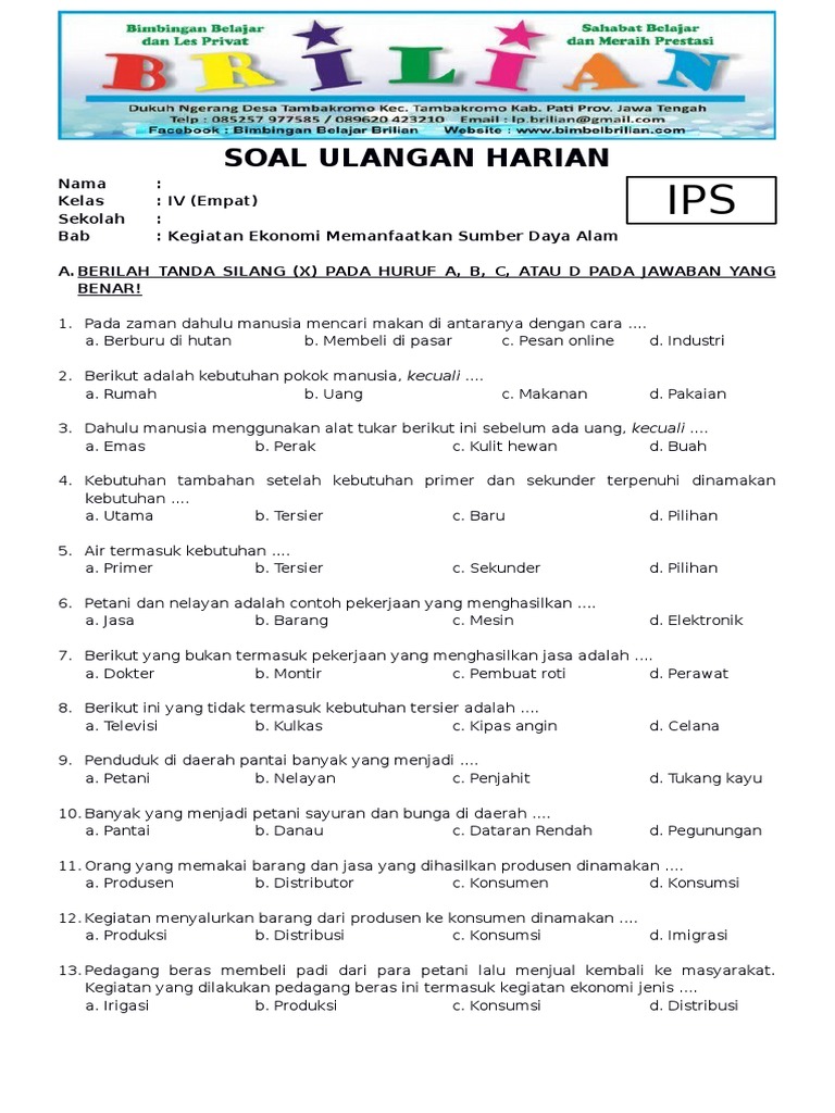 Download Soal IPS Kelas 4 SD Bab 7 Kegiatan Ekonomi Memanfaatkan …