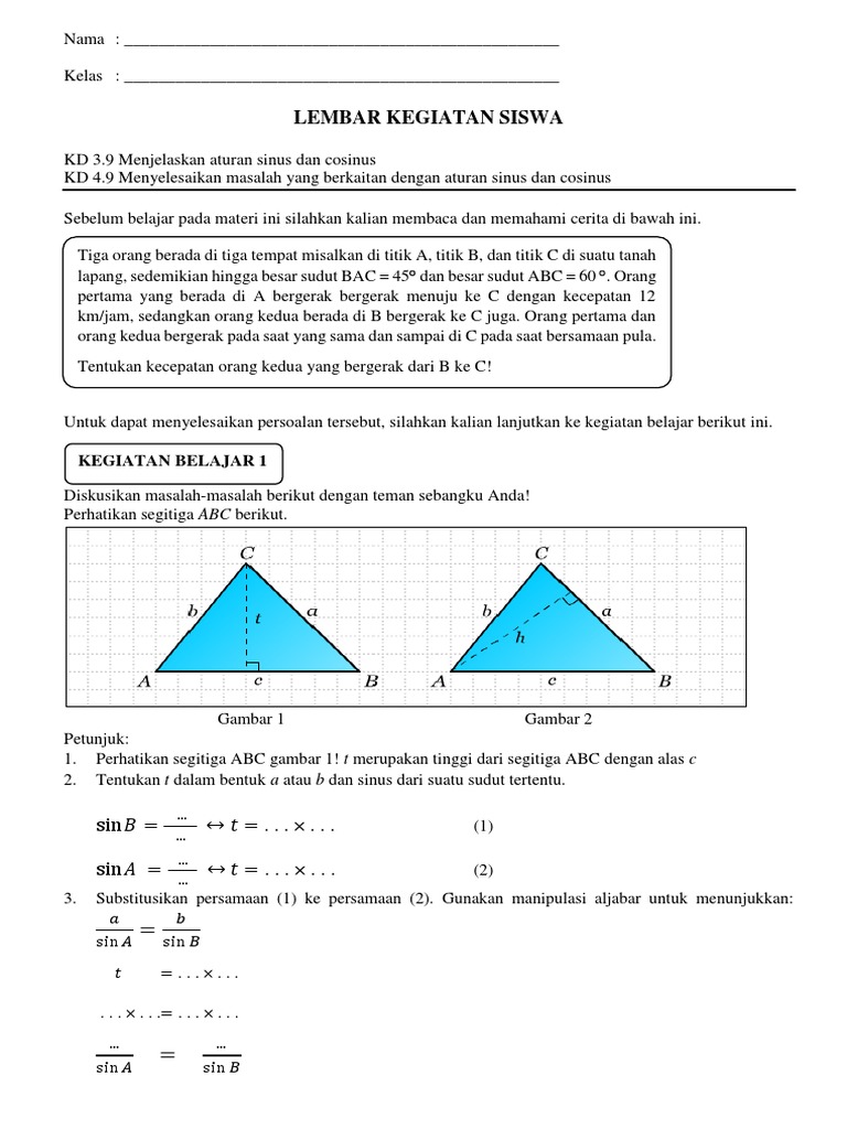 Soal Dan Jawaban Aturan Sinus Cosinus Dan Luas Segitiga Pdf - Guru …