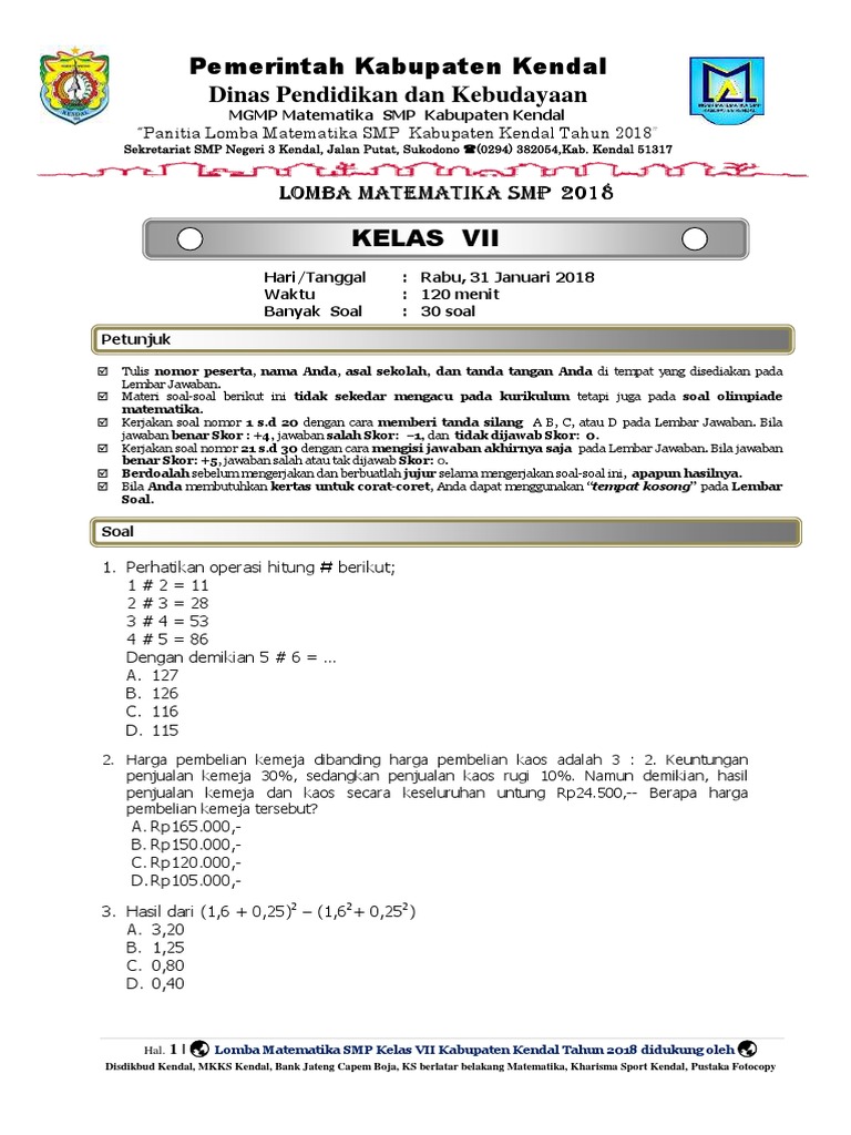 Contoh Soal Olimpiade Matematika Smp Kelas 7 | Kumpulan Soal …