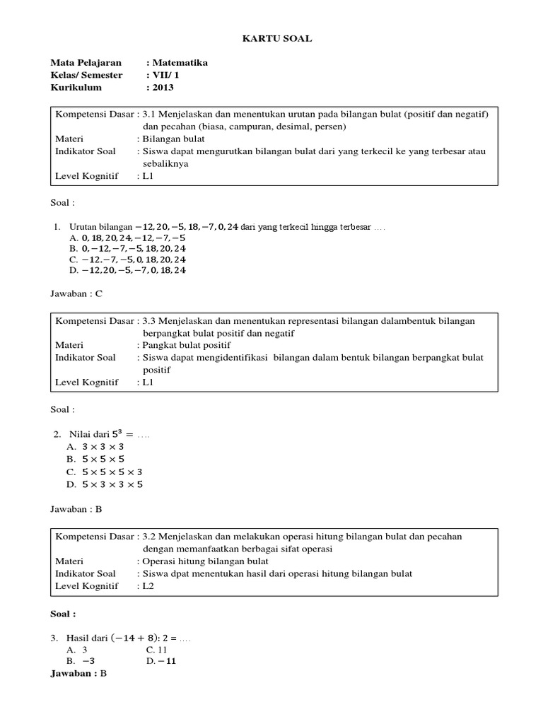 Contoh Kisi Kisi Soal Matematika Smp Kelas 7 - Dunia Sosial