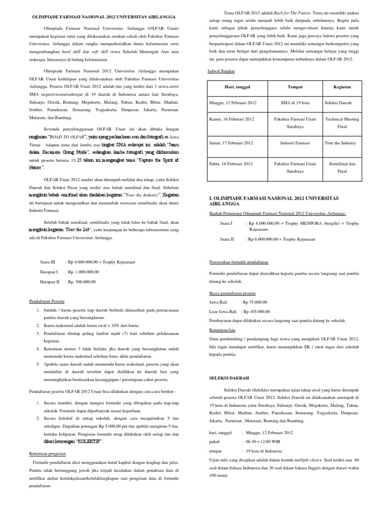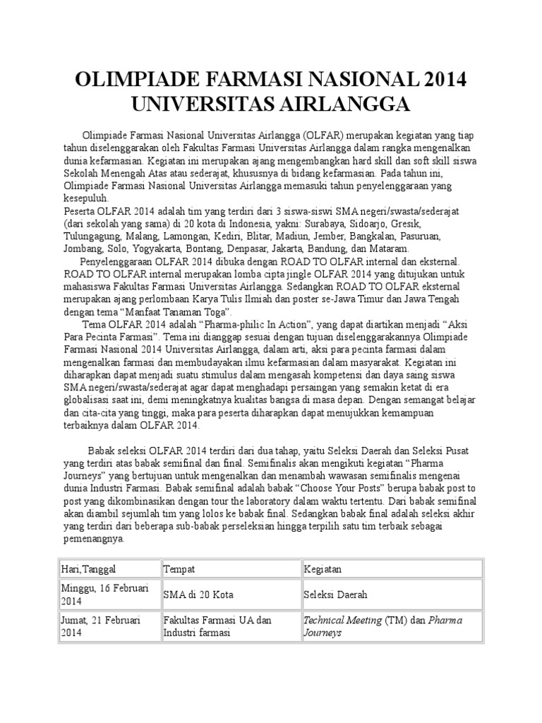 OLFAR (Olimpiade Farmasi UNAIR) 2015 - INFO LOMBA TERUPDATE …