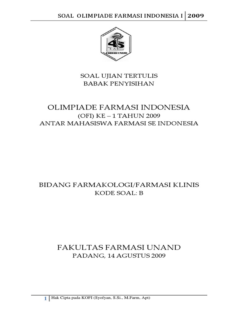 OLIMPIADE FARMASI INDONESIA IX - PDF Free Download