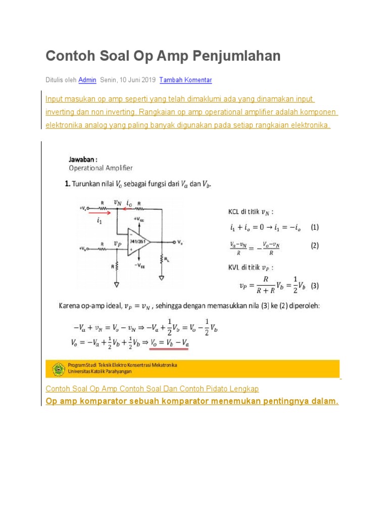 Contoh Soal Op Amp Penjumlahan - Skuylahhu
