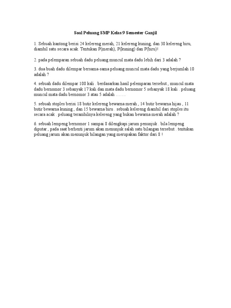 Contoh Soal Peluang Matematika Kelas 9 - Stay Grateful and Be Happy!