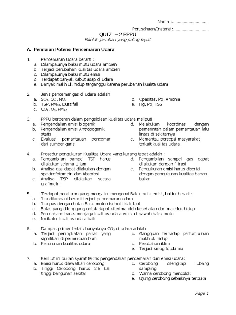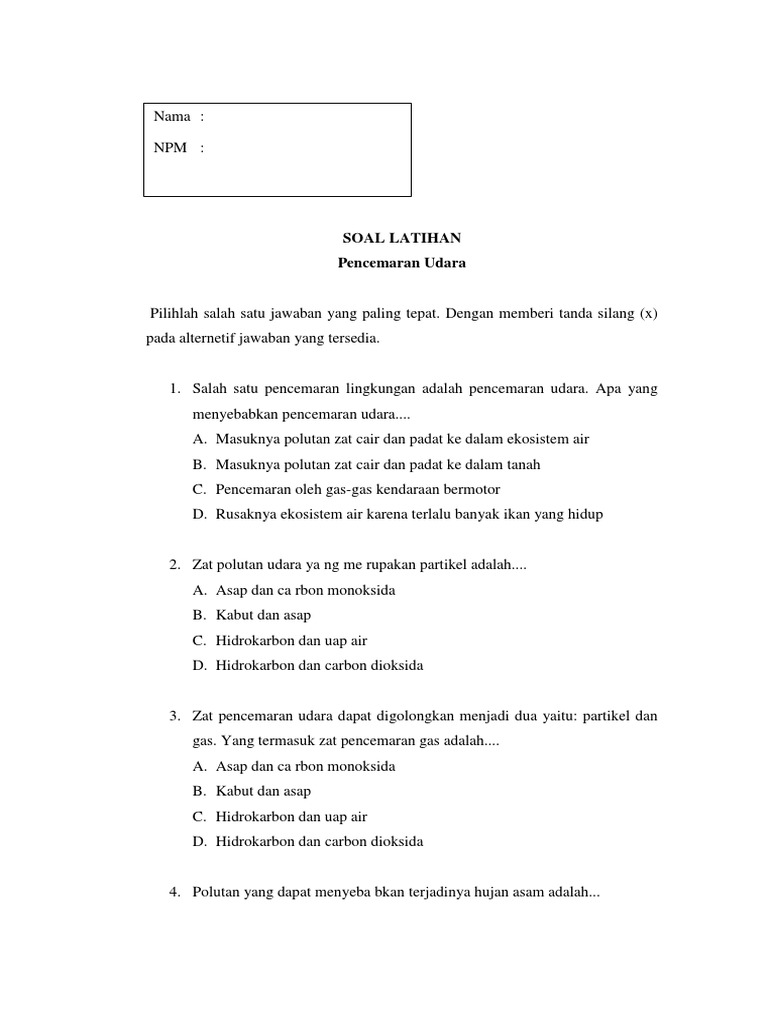 Soal Pencemaran Udara Dan Jawabannya