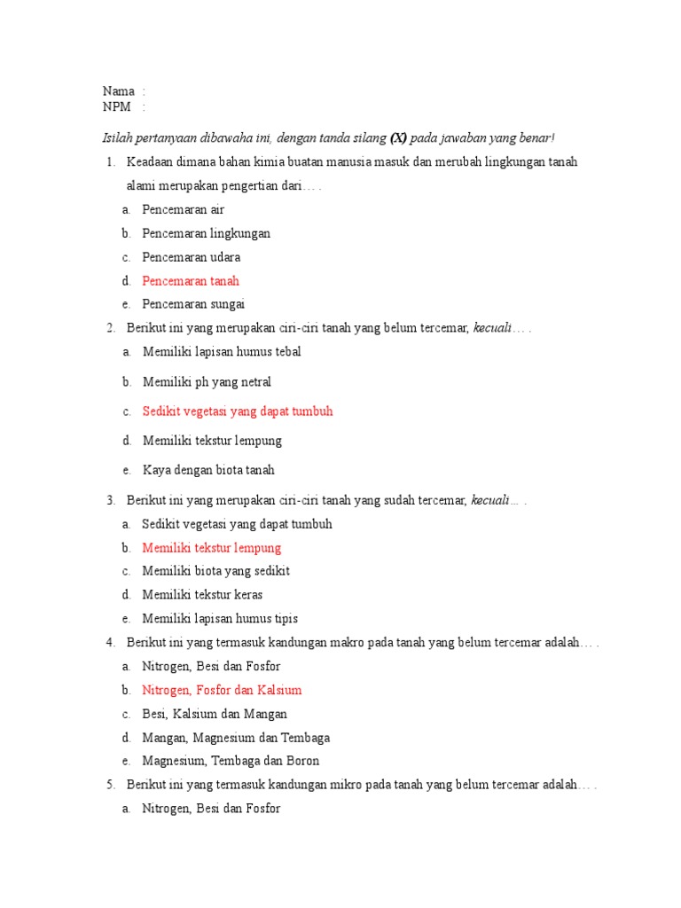 Soal Dan Jawaban Pencemaran Tanah