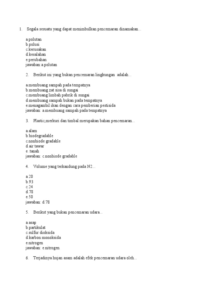 Soal Dan Jawaban Pencemaran Lingkungan
