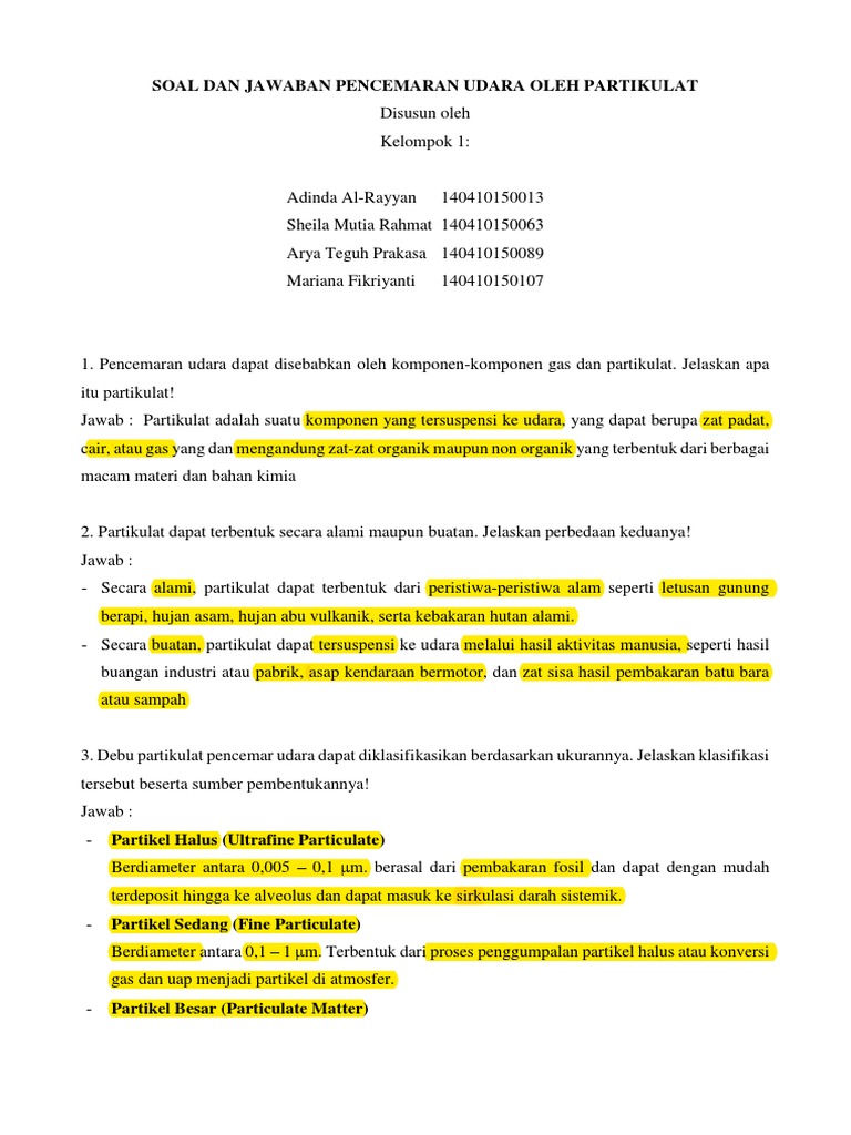 Soal Dan Jawaban Pencemaran Udara Oleh Partikulat