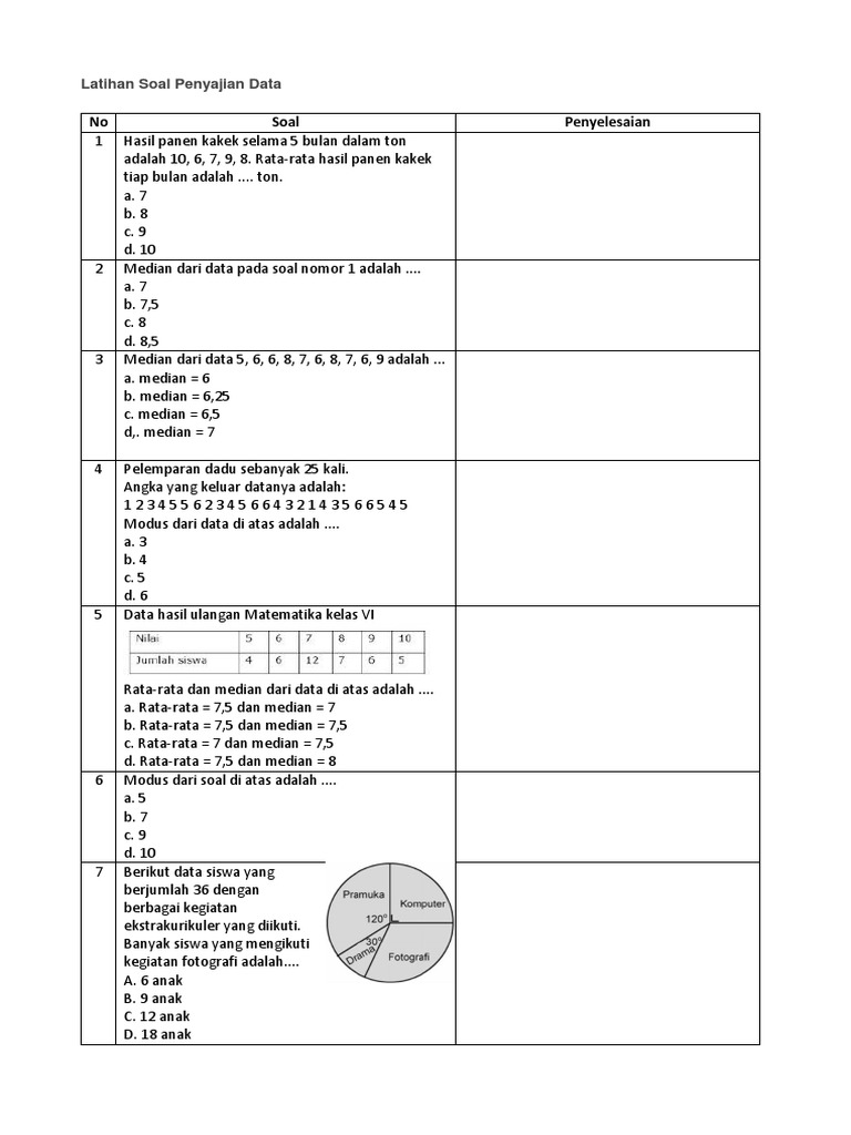 No Soal Penyelesaian: Latihan Soal Penyajian Data