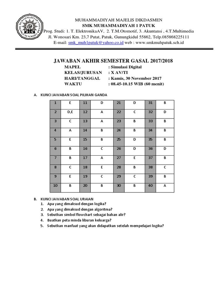 Contoh Soal Simulasi Digital Kelas 10 Semester 1 - Inputsoal.com