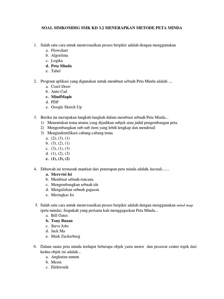 Contoh Soal Peta Minda Beserta Jawabannya - Contoh Soal Terbaru