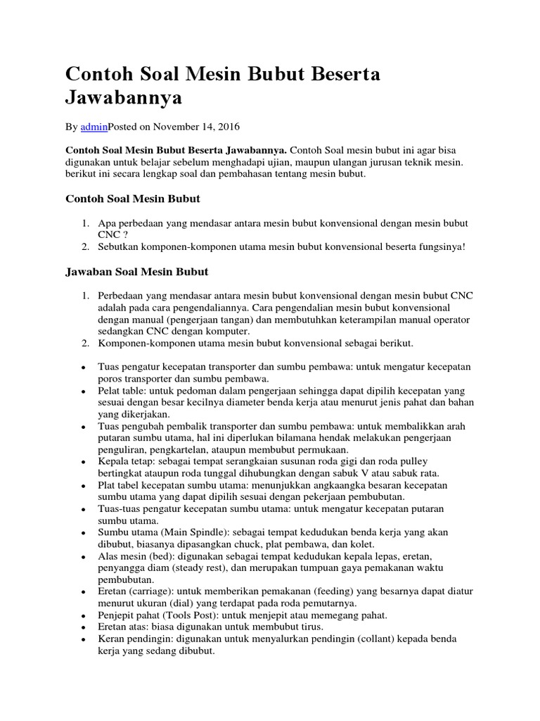 Contoh Soal Dan Jawaban Mesin Bubut - Contoh Soal Terbaru