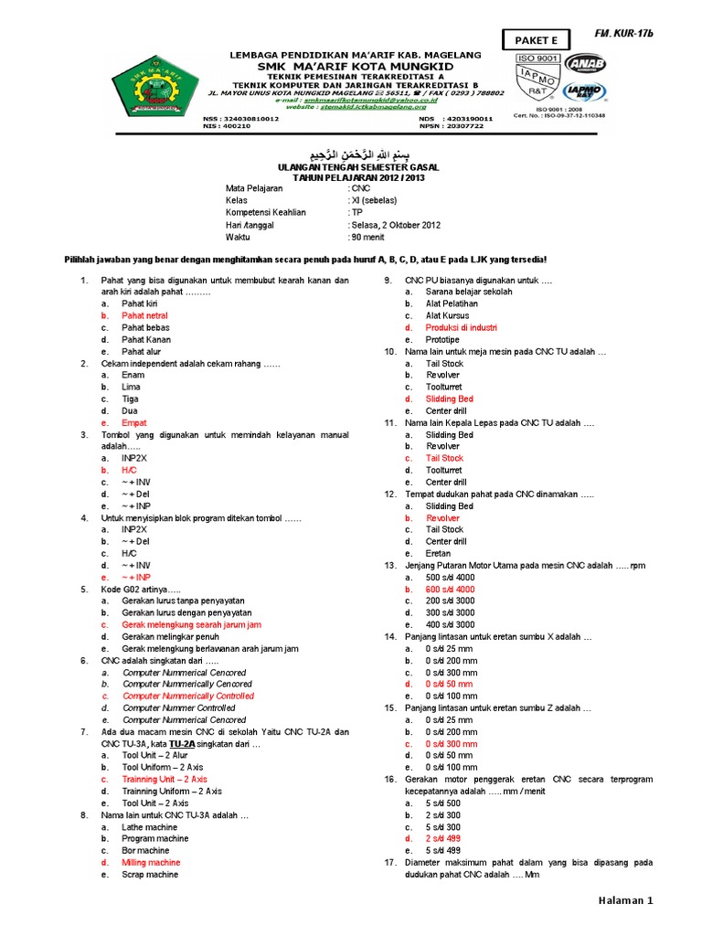 Soal Dan Jawaban Mesin Cnc - Kanal Jabar