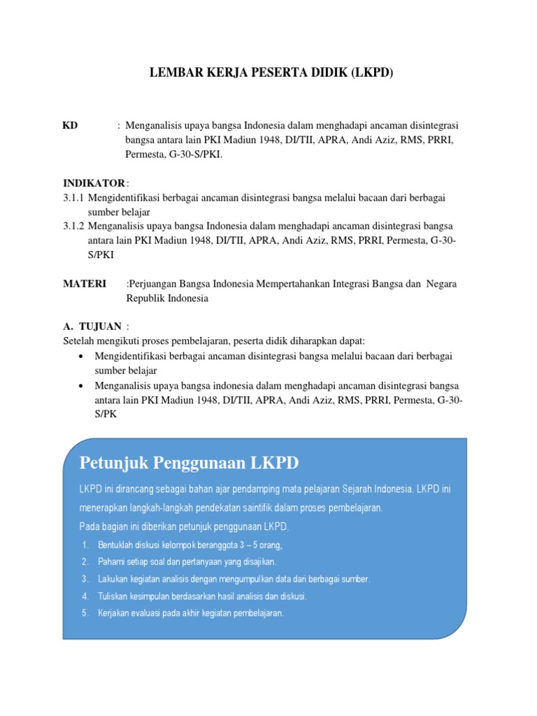 Soal Sejarah Disintegrasi Bangsa - Guru Paud