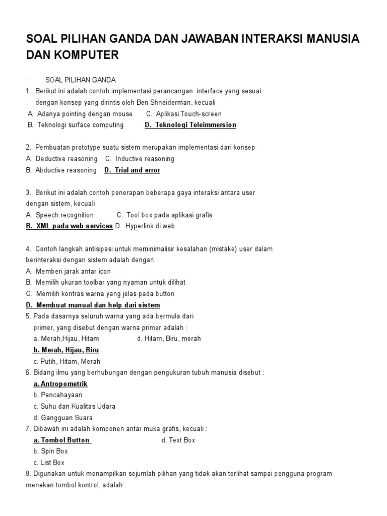 Soal Pilihan Ganda Dan Jawaban Interaksi Manusia Dan Komputer …