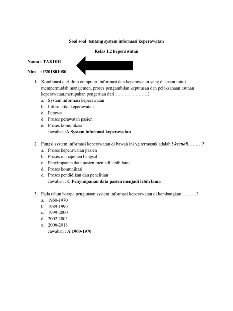Tugas Soal-soal Sistem Informasi Keperawatan Kelas l2 Semester 3