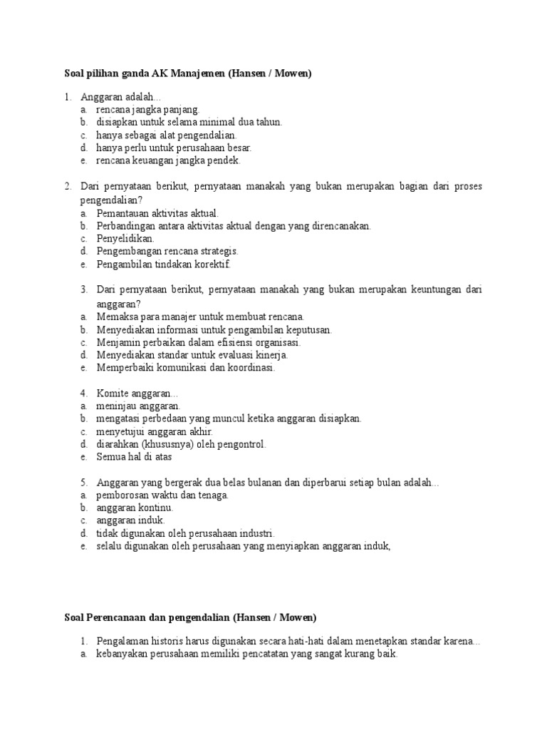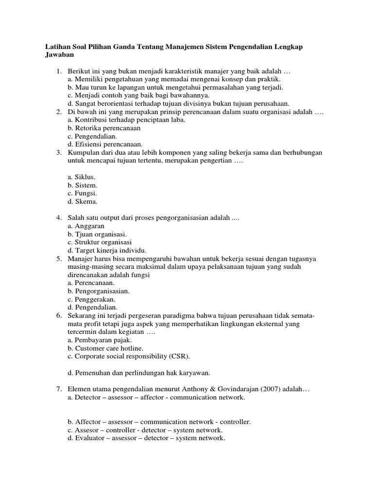 50 Contoh Soal Pilihan Ganda tentang MANAJEMEN & Jawaban - Muttaqin id