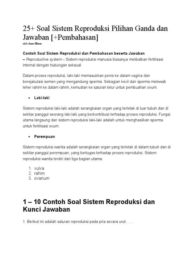 10 Contoh Soal Pilihan Ganda dan Jawaban tentang Reproduksi …