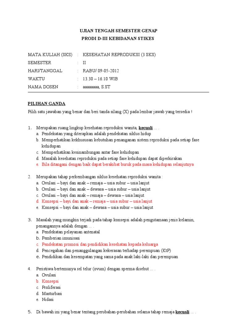 Soal Dan Jawaban Kesehatan Reproduksi - Bali Teacher