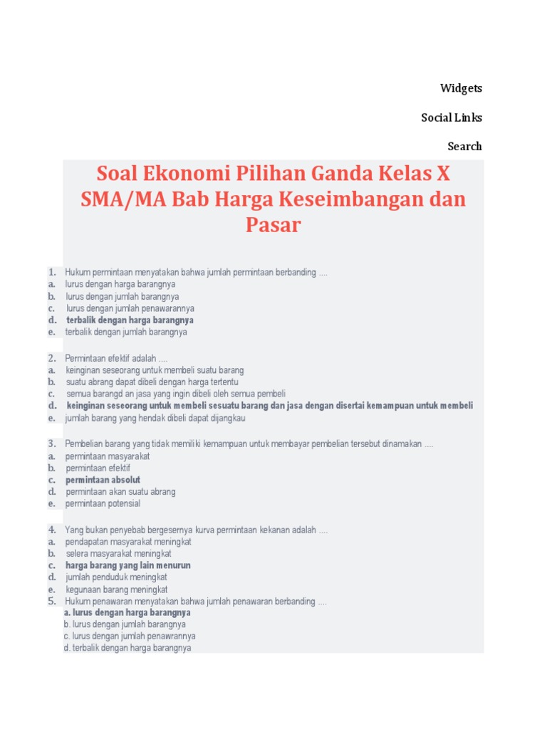 Soal Pilihan Ganda Tentang Permintaan Dan Penawaran
