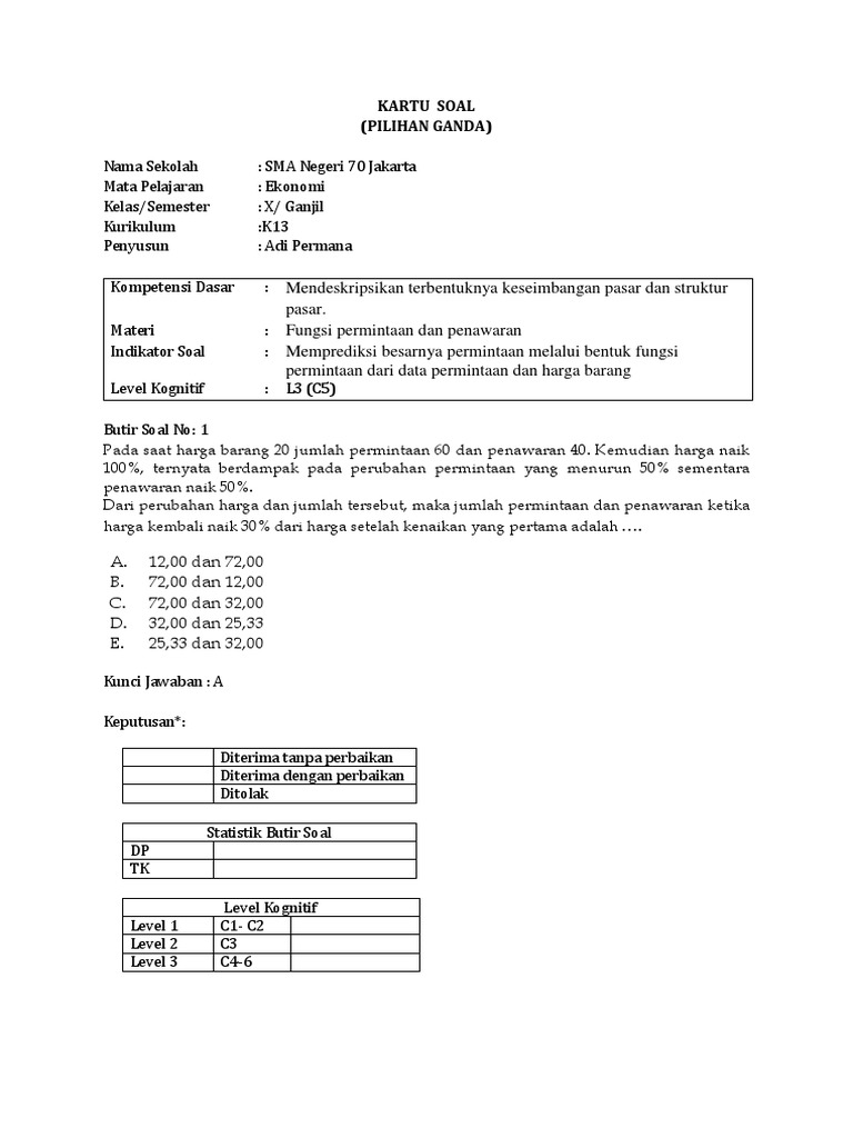 Contoh Soal Pilihan Ganda Permintaan Dan Penawaran Beserta …