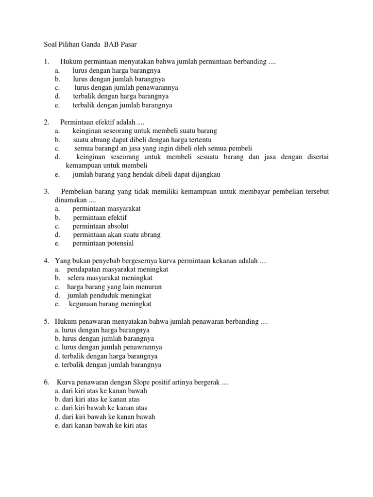 Soal Pilihan Ganda BAB Pasar