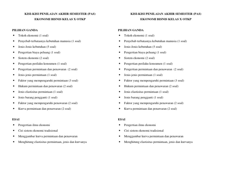 Contoh Soal Ekonomi Kelas X Semester 1 Kurikulum 2013 Beserta …