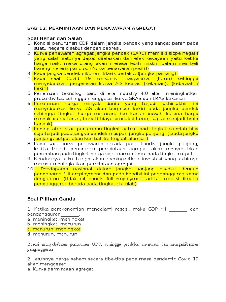 Bab 12. Permintaan Dan Penawaran Agregat Soal Benar dan Salah