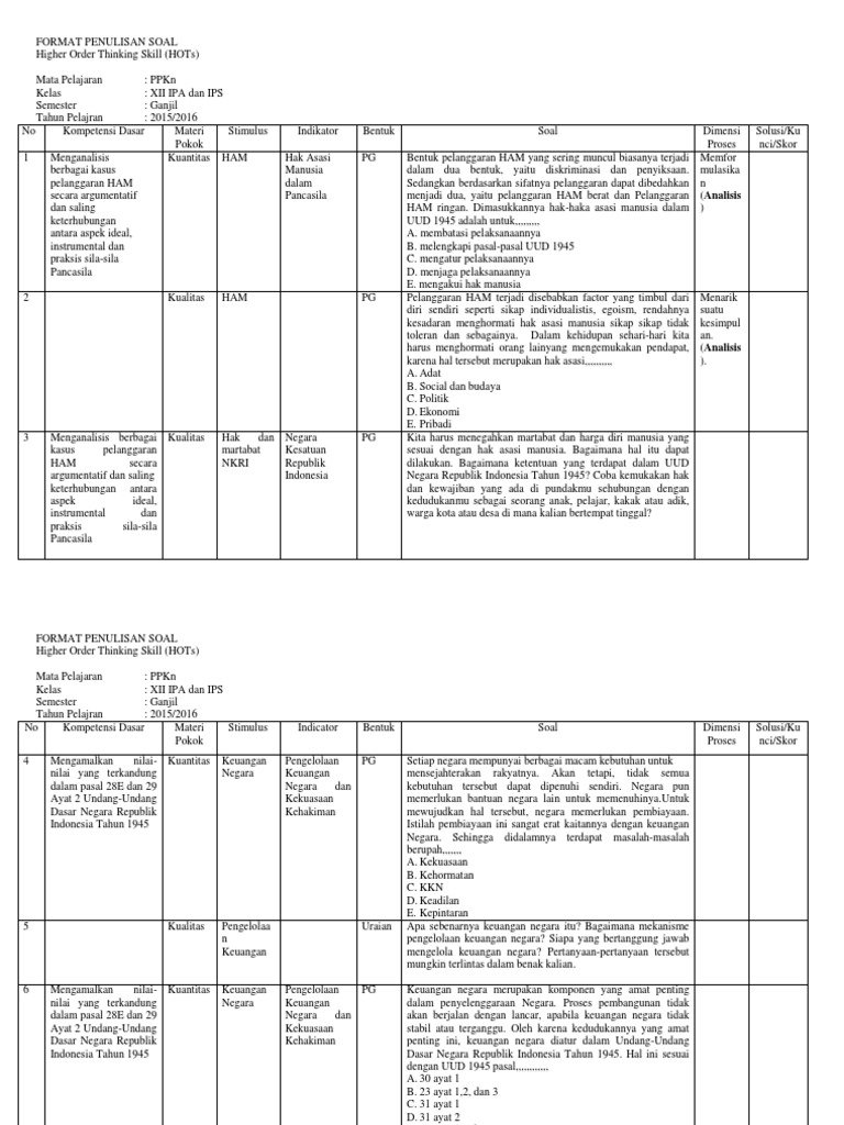 Soal Hots Pkn Kls Xii Ganjil
