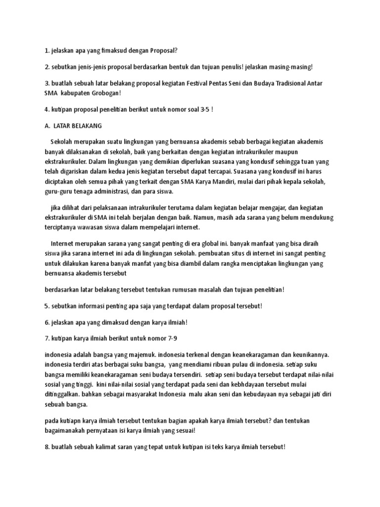 Latihan Soal Teks Proposal Kelas 11 - Blog Mataoker