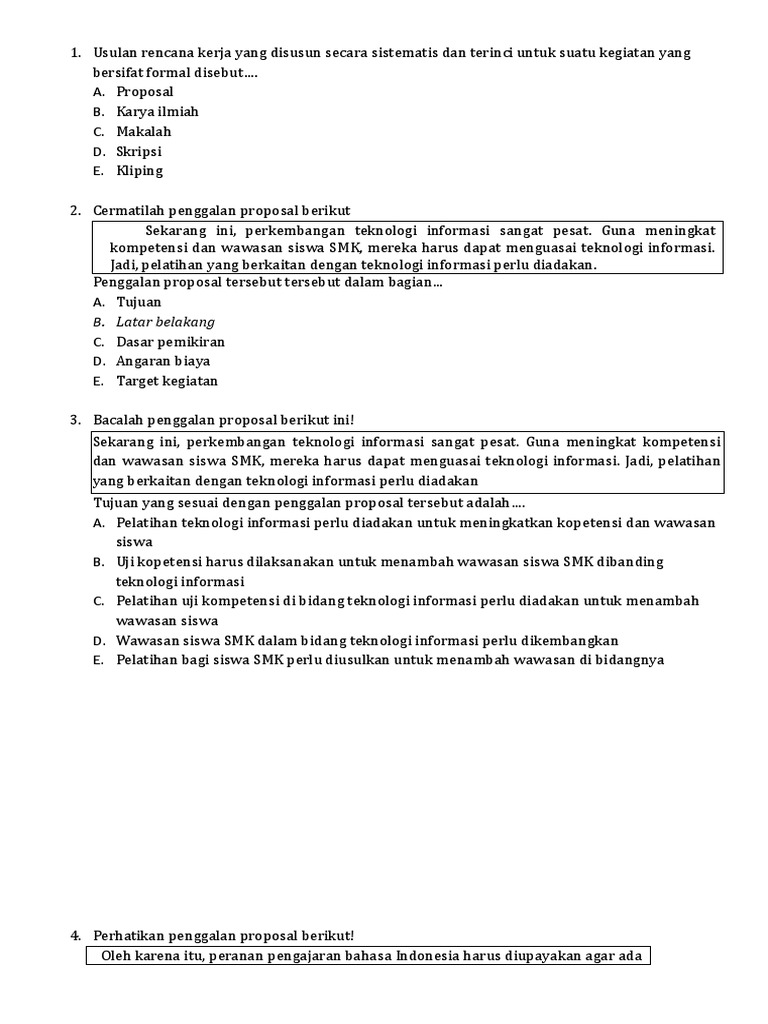 Contoh Soal Bahasa Indonesia Materi Proposal - Berbagi Contoh Proposal