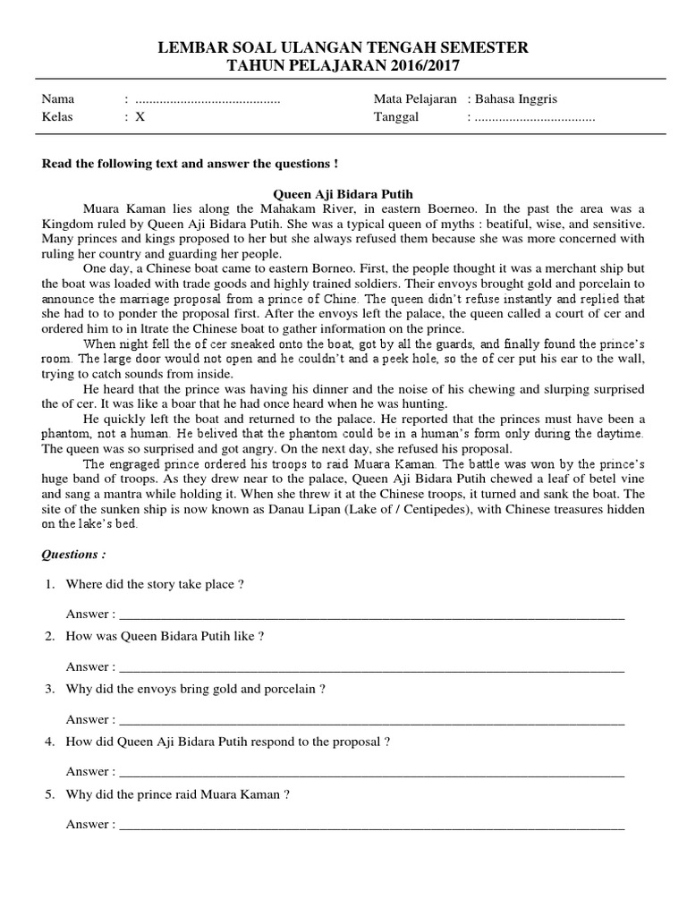 Soal Mid Bahasa Inggris Kelas XI
